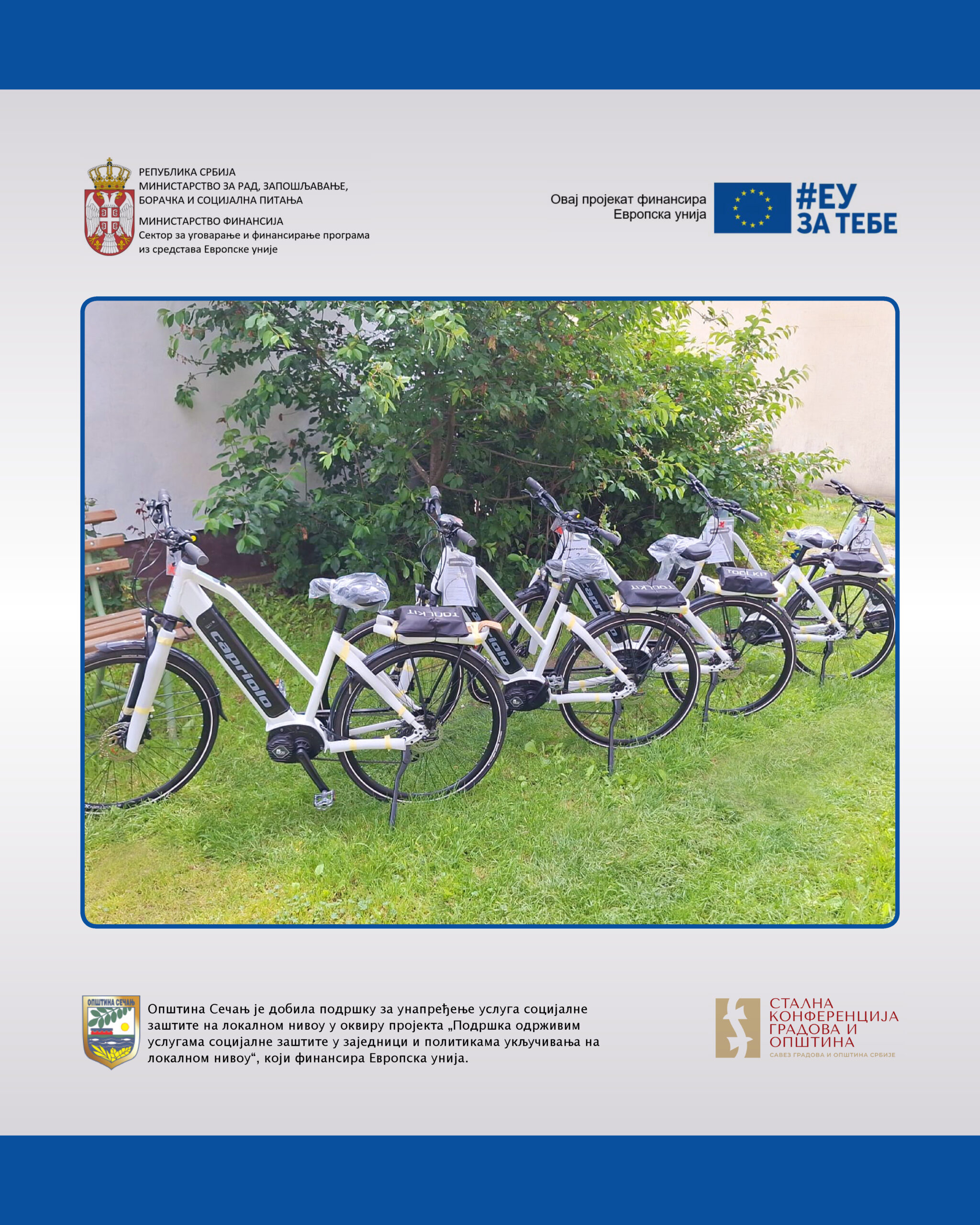 U okviru projekta „Pristupačniji i odgovorniji sistem socijalnih usluga u Sečnju“, Centar za socijalni rad opštine Sečanj dobio je električne bicikle, tablete, a izrađen je i specijalizovani softver namenjen unapređenju pružanja socijalnih usluga na terenu.