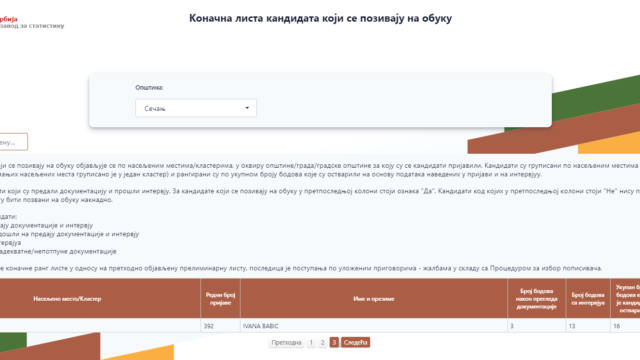 Републички завод за статистику објављује Коначну листу кандидата за пописиваче који се позивају на обуку, са адресом, датумом и временом почетка обуке.